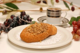 Cinnamon spiced, egg shaped cookie soaked in honey syrup, topped with chopped walnuts. Known as a traditional dessert throughout Greece.