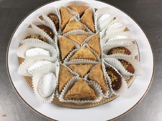 Includes 8 petite baklava pieces, 6 koulourakia, 3 kourabiedes, and 3 melomakarona.
